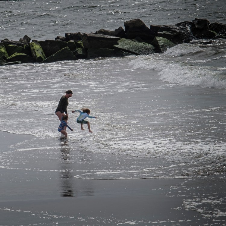 The enthusiasm of a young child jumping the waves…